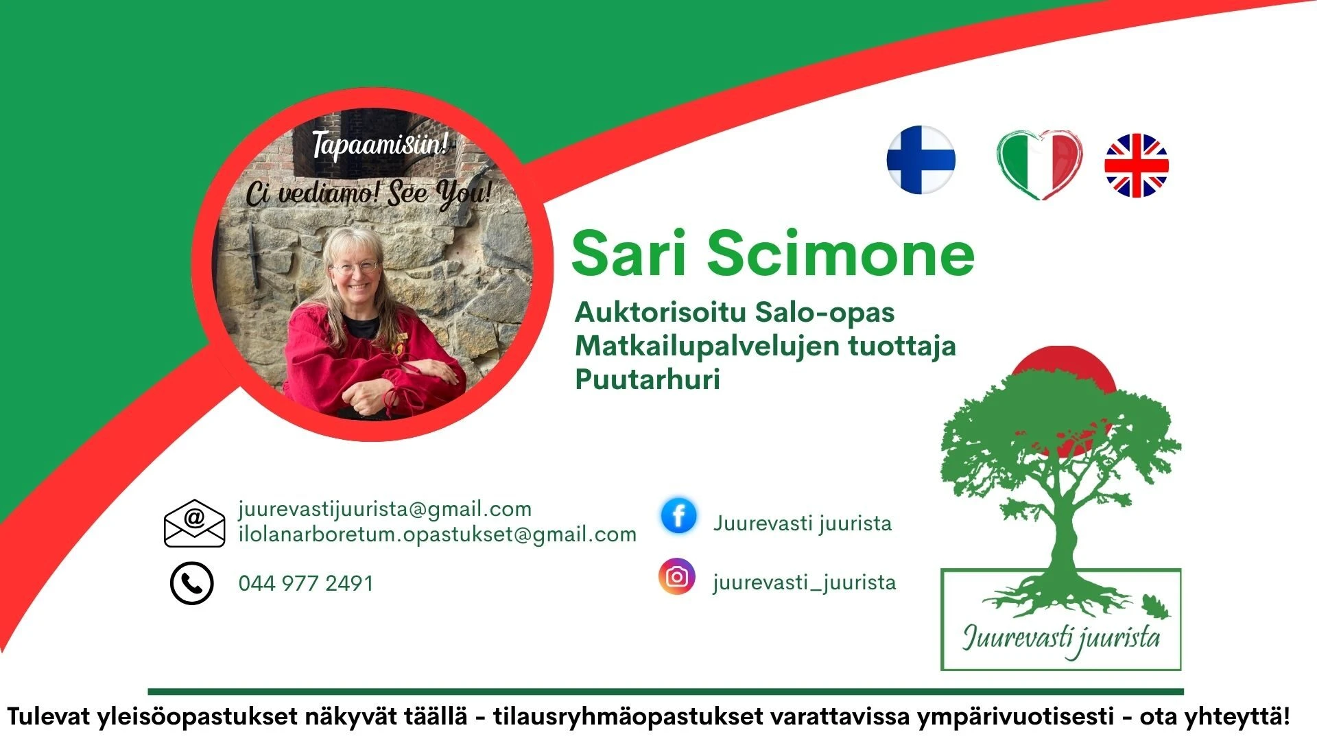 Some on aktiivinen talvellakin, seuraamalla Instagramin tai Facebookin tilejäni Juurevasti juurista näet ensimmäisten joukossa tiedot vuoden 2026 opastuksistani sekä ajankohtaisia matkailu-uutisia Salon seudulta ja muualtakin.
